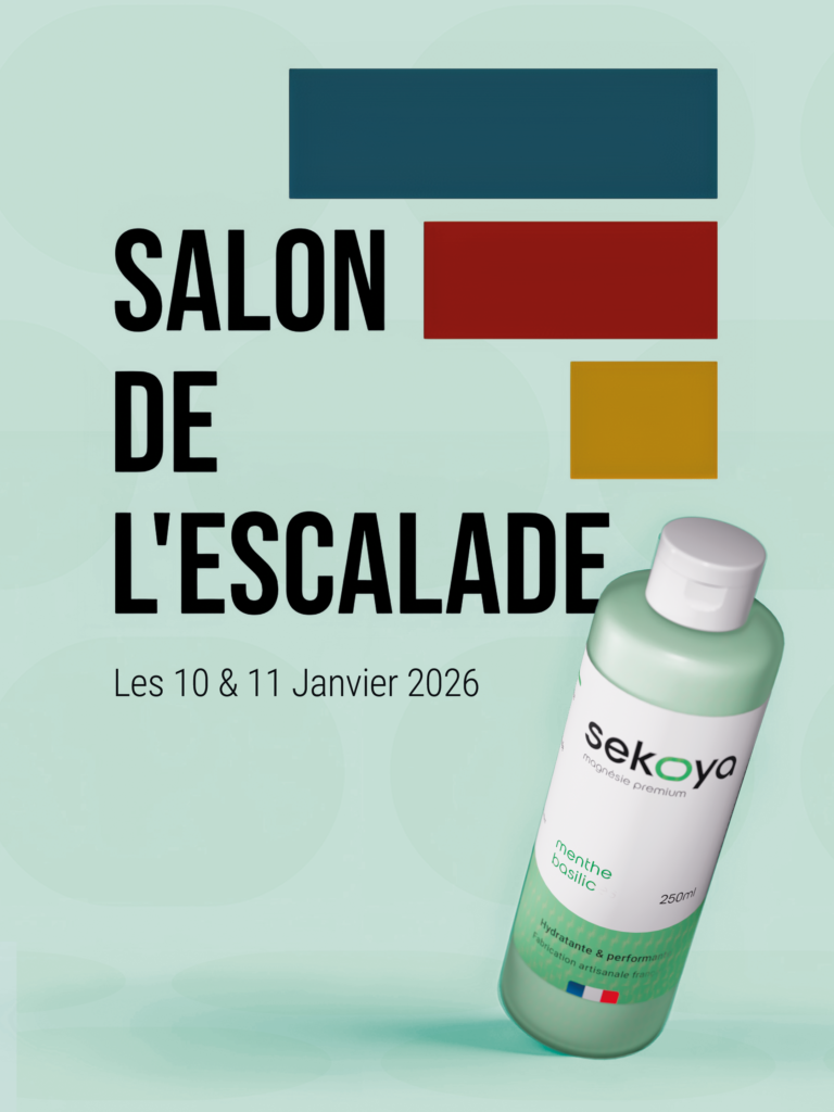 L’événement, rythmé par les compétitions et les conférences, nous à offert la chance de faire des rencontres très enrichissantes et prometteuses. C’est ainsi que débute notre collaboration avec le triple champion de France Pierre Le Cerf et son équipe de coach d’Ascension Grimpe. Un weekends passionnant que nous avons passé aux côtés de Jérémie, créateur des sacs et accessoires Compacktbags, à destination du cyclisme et de l’escalade.Notre athlète Mathilde Slab, première ambassadrice de Sekoya était également sur place pour le contest. Comme Mathilde, de nombreux autres grimpeur.euse.s ont eu l’opportunité de tester la magnésie Sekoya dans les conditions réelles d’une compétition d’escalade. Le Salon de l’Escalade 2026 était une formidable aventure humaine à laquelle nous espérons pouvoir participer de nouveau l’an prochain !